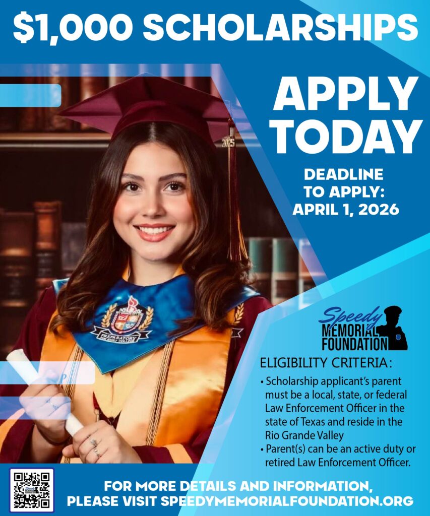 The applicant’s parent must be a Law Enforcement Officer in the State of Texas and reside in the Rio Grande Valley. The parent(s) can be active duty or retired Law Enforcement Officer.